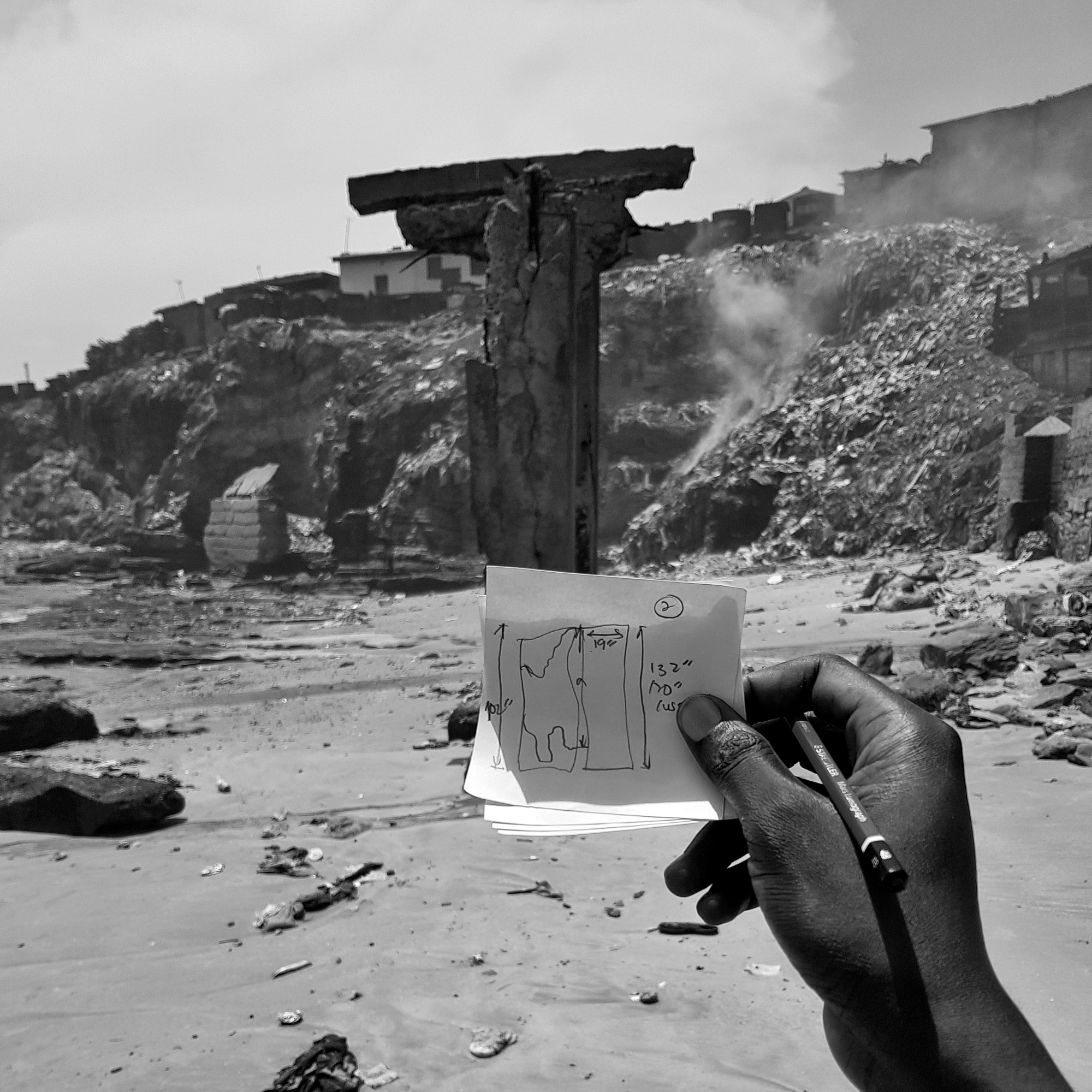 The installations were done in two public spaces and one private space, two in communities near the ocean and the other further away. The choice of these locations is also part of the stories being told, one of which is, that the ocean is a technological framework from which we can create. Each location was marked using a code. Shiashie was [1000], Jamestown was [2000] and Lokkohouse was [3000].
